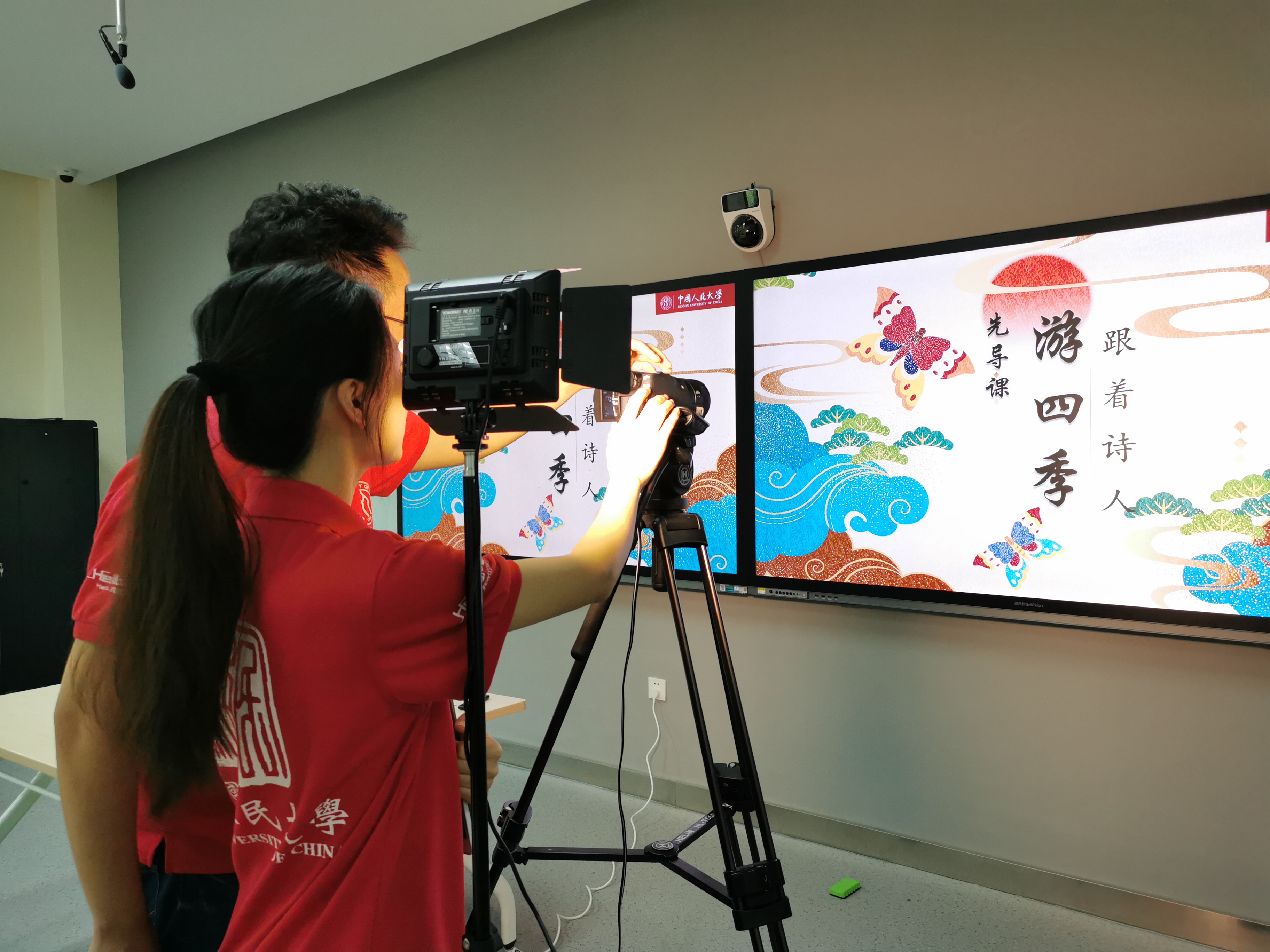 自开赛以来,参赛团队在章欣老师的引领下积极拓宽教学思路,力求创新教学方法,设计完成了作品《跟着诗人游四季》高级写作拓展课程,课程全系列以四季变换为主线,从应景古诗切入,讲解写作技巧及修辞手法。同时,针对留学生因文化差异而较难理解的内容,该课程做适当讲解,使学生在情景中习得写景的技巧,感知中华文化的魅力。团队结合参赛要求和自身特点,将汉语教学和智慧课堂系统深度融合,着力展现人大汉硕学生教学水平与风采。团队作品因创意新、教态好、讲解深入浅出、制作精良,且具备较强的趣味性及启发性,获得了评委老师的一致好评——“充分体现了微课‘小而精’的特色,实属高级汉语精品课程”。