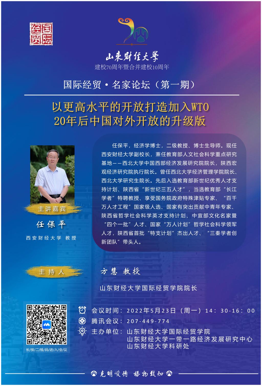 国际经贸·名家论坛(第二期)——建校70周年暨合并建校10周年系列讲座