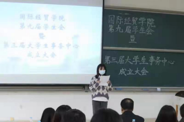 首先,大会由学生会代表聂陈卓杰同学发言,她向我们介绍了学生会部门和分工工作,总结了过去一年中,学生会组织的各类文娱活动,如帮助同学们深入了解职场礼仪的“悦享青春,绽放国贸”商务礼仪大赛,展示三千计划成果的“实践归来话感受”三千计划宣讲会及“五四”文艺汇演、红色定向越野等,同时,聂陈卓杰同学也代表学生会做出郑重承诺,学生会将继续奋发进取为学院师生贡献力量。