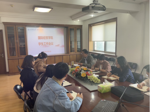 召开学生工作会议,学院党委书记崔东峰,副书记郝秀峰、王斐斐、仪云倩和全体辅导员参加会议。