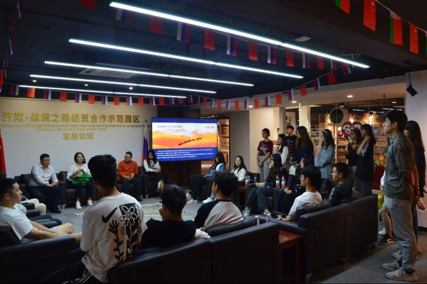 学生代表及俄罗斯留学生代表,参访济南国贸电商产业园。国贸学院团委书记蒋静,党委组织员王思远,国际商务系教工党支部书记王涛、跨境国合教工党支部牟进进一同参加了此次参观活动,丝路众恒集团董事长崔震等陪同参观。