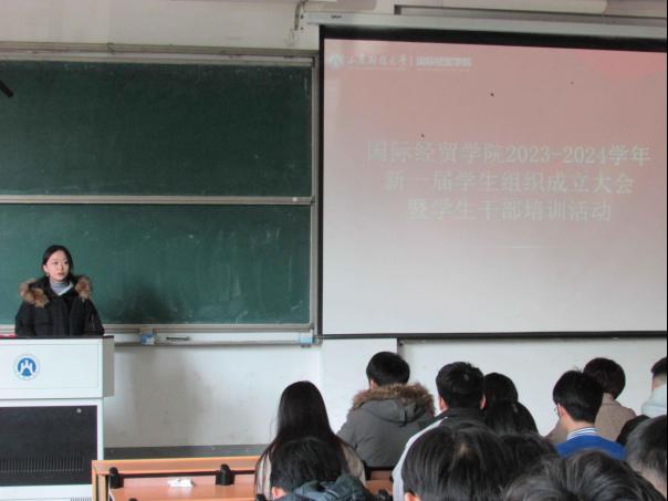 接下来,新一届学生组织各部门负责人依次上台发言。他们纷纷表示将积极配合老师,努力做好工作,成为同学们的榜样,希望在工作中取得更多的成就,为学院的发展贡献自己的一份力量。