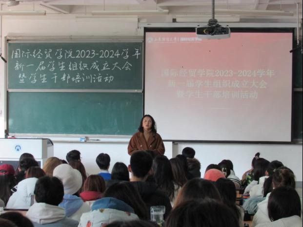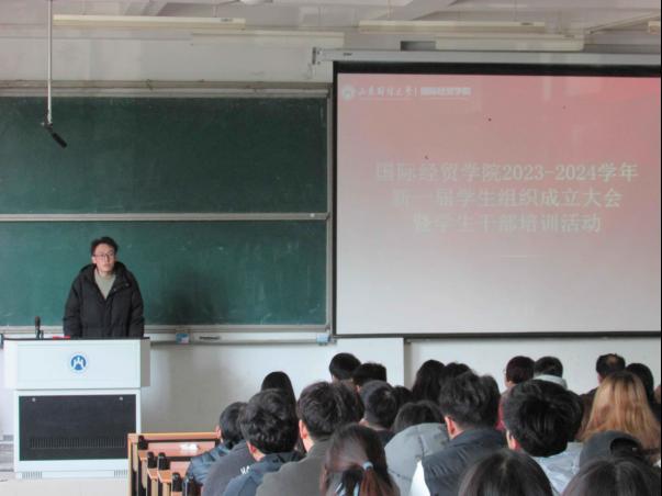 2023-2024学年学生组织换届大会在圣井校区举行。学院党委书记崔东峰、副书记郝秀峰、团委书记蒋静及全体辅导员出席大会,活动由蒋静主持。