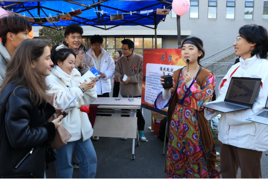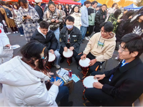 在经过一个多小时的场地搭建与准备后,下午两点活动正式开始。作为丝绸之路的东方起点,中国展区以投壶、射箭、诗词游戏等蕴含中国传统文化的活动为主。在“一带一路”国家展区,东非的非洲鼓、俄罗斯的紫皮糖、中亚的民族服饰、南亚琳琅满目的展品、此起彼伏的鼓掌声……。生动趣味的活动形式吸引了全校师生的关注与参与,更有来自俄罗斯的留学生同学亲身体验参与游戏。