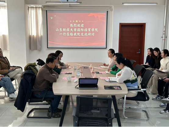 党委书记崔东峰带领学生工作团队赴山东管理学院经贸学院交流研讨。山东管理学院经贸学院党总支书记张琪、副院长张劲青、党总支副书记仪云倩及全体辅导员参加了此次交流研讨活动。