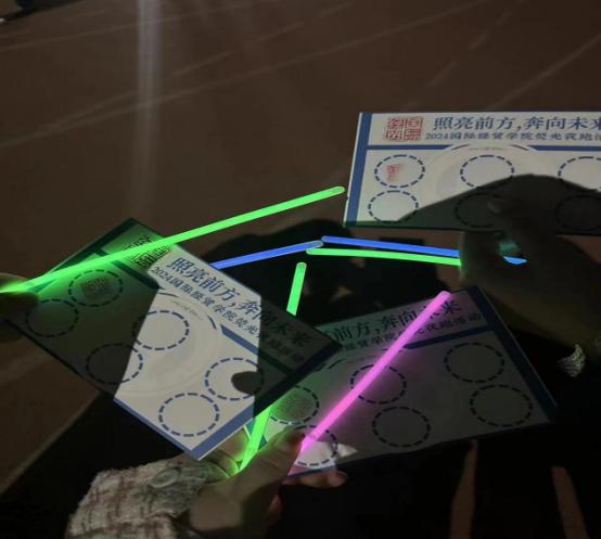 增强体育锻炼意识,展现国贸学子积极乐观、健康向上的精神风貌,3月21日,院于圣井校区东操场举办了“照亮前方,奔向未来”荧光夜跑启动仪式活动吸引了约200名同学穿戴荧光手环穿梭于校园。各位同学能否跑出属于自己的热辣滚烫,让我们一起来看一看吧!