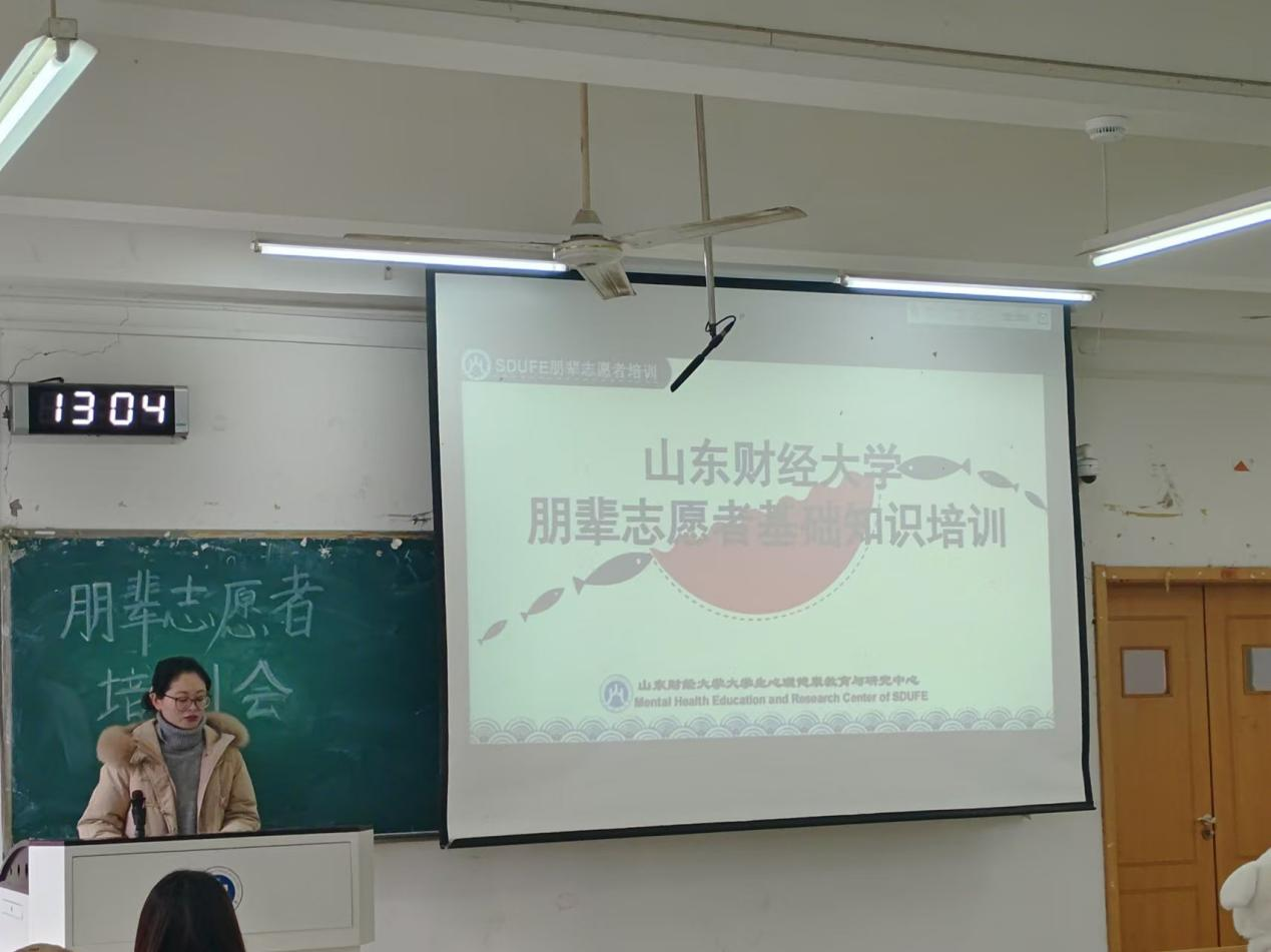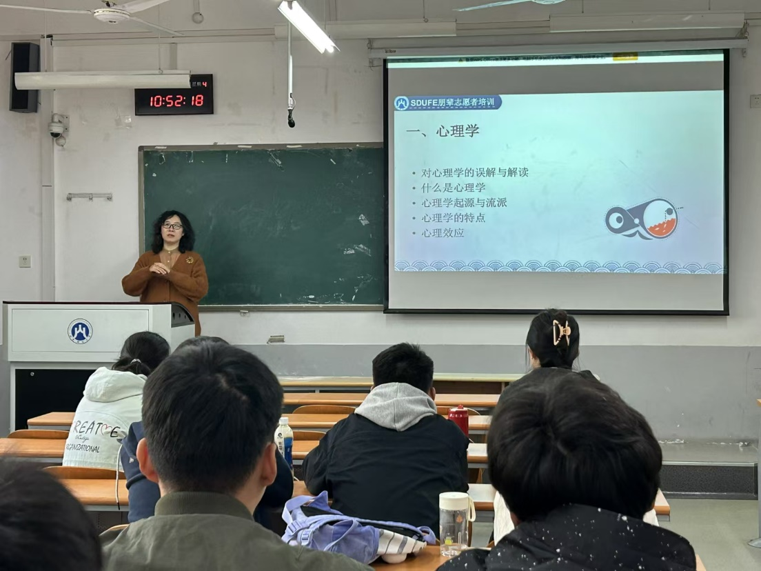 于近日在舜耕校区与圣井校区分别召开2024级心理朋辈志愿者培训会。本次培训会由学院党委副书记王斐斐、辅导员李亚莉主讲,2024级心理朋辈志愿者参加。