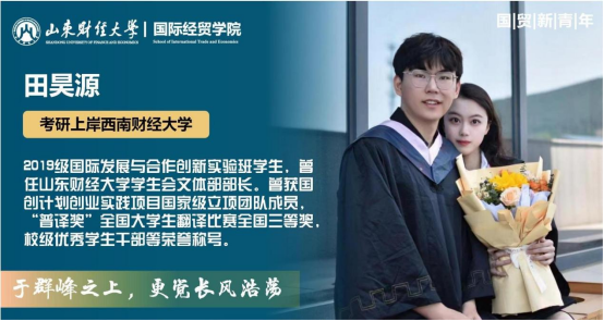 大学生社会实践“三千计划”校级优秀团队队员,校级优秀毕业生,校级优秀学生干部等荣誉称号。2023年成功考研上岸西南财经大学国际商务专硕。