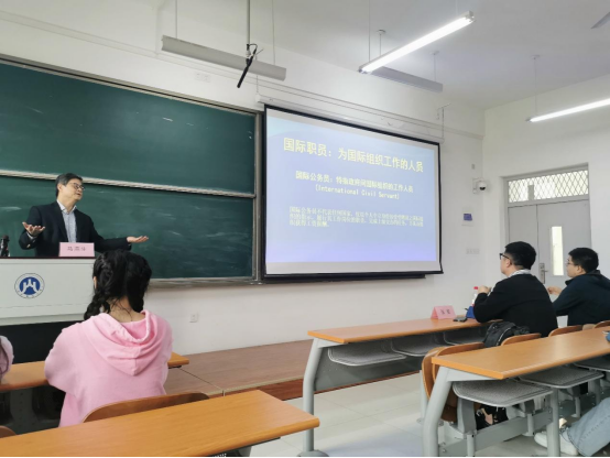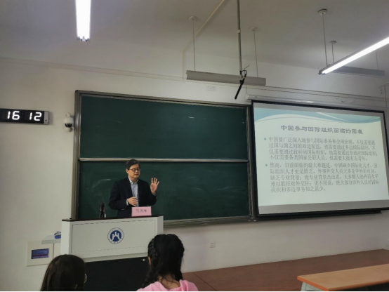 马燕生先生曾长期任职于联合国,具有丰富的国际组织工作经验。讲座中,他从国际组织的分类、国际职员的工作性质、国际组织的治理结构等多方面系统阐述了国际组织的特点和最新发展情况,并结合我国现状,围绕中国参与国际组织面临的困难和挑战展开讨论,进而引出我国在国际组织中的人才极度匮乏问题。马公参提到,虽然我们中国人口数量众多,但在国际组织中的任职人员比例却是长期处于低位的,尤其是多语种复合型专业人才非常匮乏,这对我国在国际舞台上的影响力和话语权提升都有显著影响。在这一背景下,他认为我校国际发展合作创新班的组建非常必要,相关人才培养是国家软实力提升的重要组成部分,当前国家对国际组织人才培养的重要性和紧迫性已经上升到战略高度,我校作为全国第一批正式创办对应专业创新班的高校,对我国新时期国际化涉外人才培养事业发展意义重大。在讲座最后,他从国际组织人才所需要的四个素质和四种能力,即政治素质、专业素质、知识素养、个人素养和外语应用能力、交流沟通能力、统筹协调能力、分析研判能力等方面,向同学们阐述了大家最为关心的个人学习和成长发展问题。他勉励大家,要具备中国情怀、国际视野和世界胸怀,培养自己的专业复合、多语熟练、善于交流和融通中外的能力,为祖国的发展贡献自己的力量。