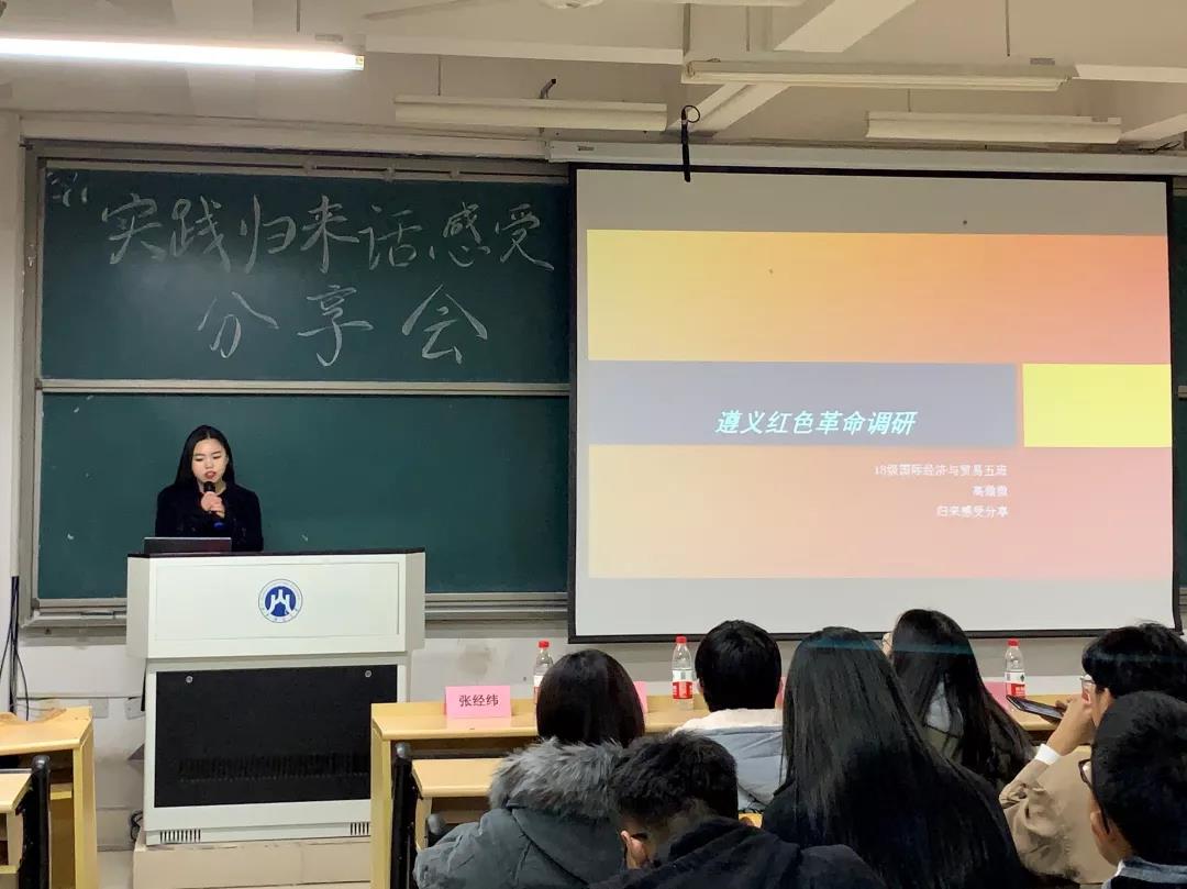 分享会上,三个优秀实践团队进行了成果展示和经验分享,这三个团队的调研项目分别为:遵义红色革命调研团队、泉城义工社团支教调研团队、“一带一路”倡议下新型物流模式应用及创新研究—基于我国新旧动能转换五所先行城市的调研团队。