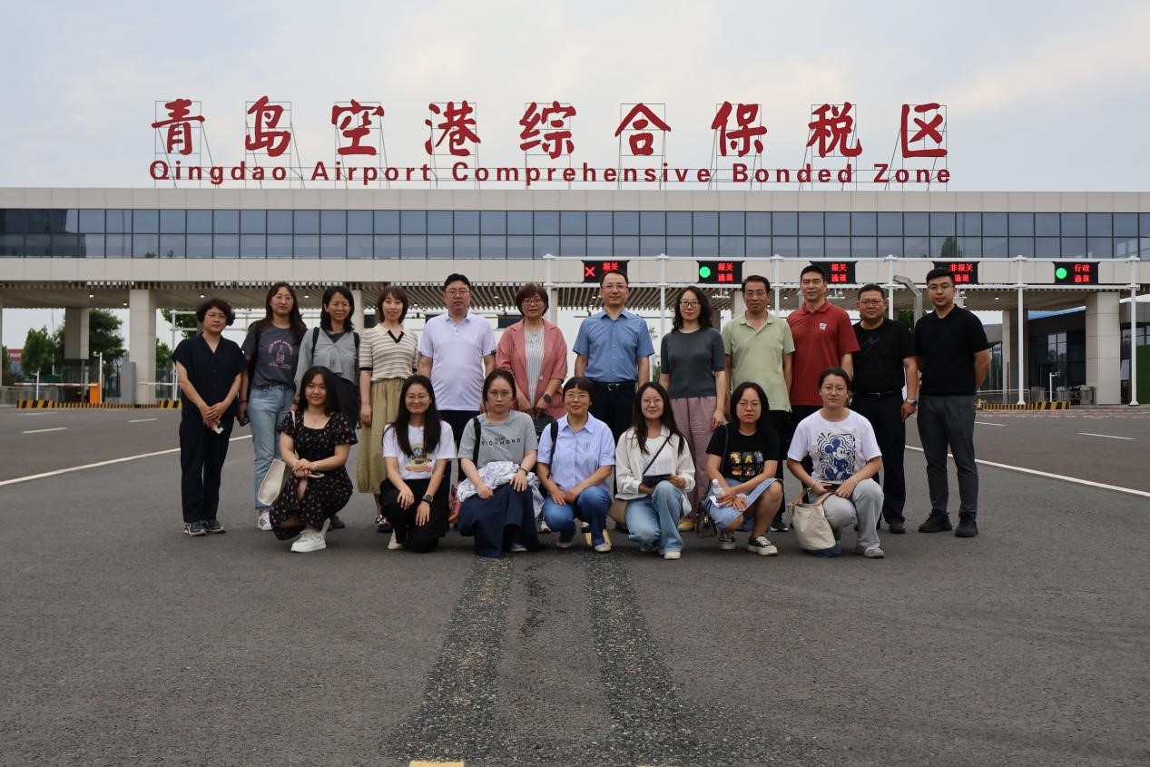 一行到达青岛后,首先实地参观了青岛空港综合保税区。对保税区内的土地规划、厂房设施、仓储条件等进行了详细考察,青岛胶东临空经济示范区党工委委员、管委会副主任时海涛为我们详细介绍保税区的运营管理模式、国际政策环境及未来的发展规划,为下一步助力建设“上合空港新城”,做好空港综合保税基地业态的精准导入工作以及通过打造商业区吸引人才进行了深入探讨。