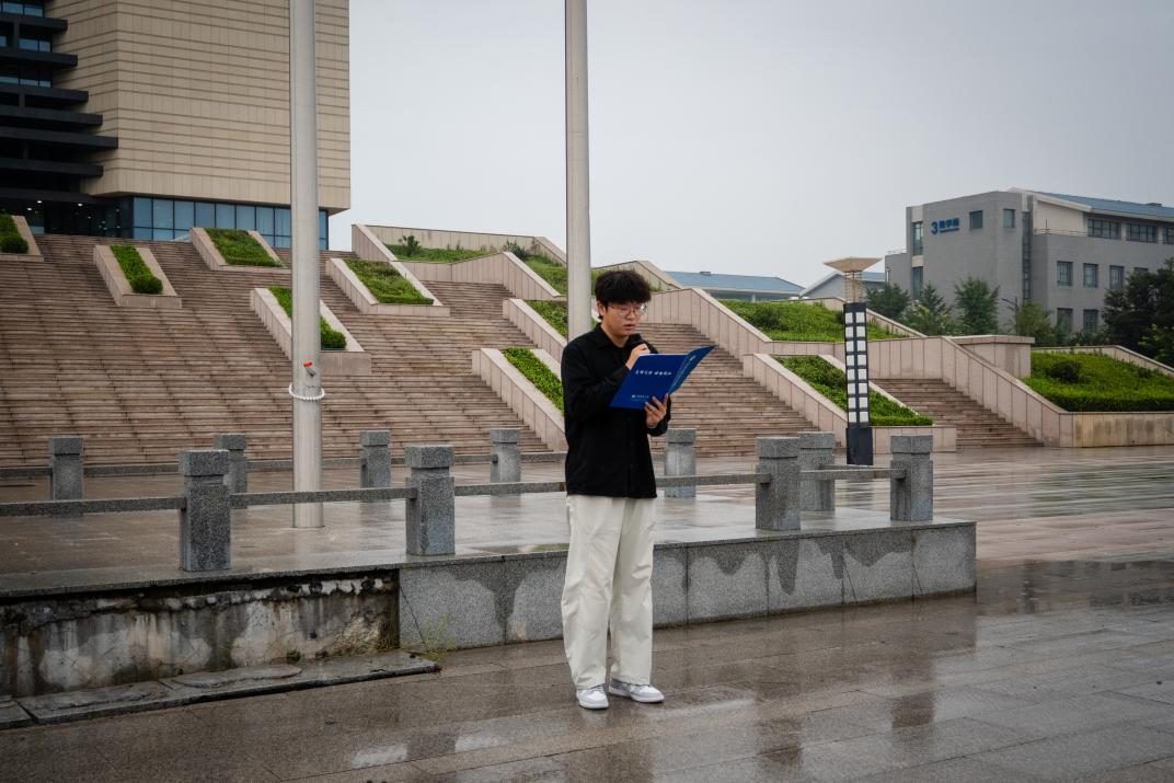 仪式最后,由2023级学生代表袁云水领誓,全体同学宣誓立志在山财大校园中追梦逐光、不负韶华,为个人理想与国家发展贡献青春力量,展现新时代青年的精神风貌与担当。
