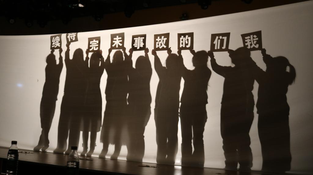 汇演在幕布剧《灯影青春》中翩然启幕,灯影婆娑,幕布轻扬,暖黄的光束透过幕布的镂空纹路,投射出青春的细碎片段,仿佛将青春故事映刻在光影画卷中。