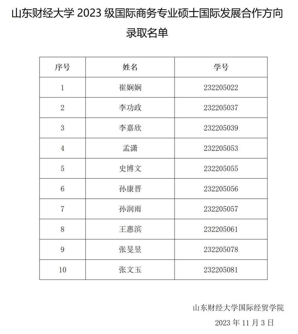 风月文学网 2023级国际商务专业硕士国际发展合方向录取名单