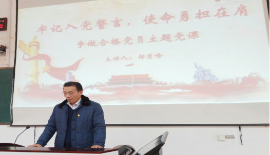 宣誓仪式完毕,郝秀峰做了题为“牢记入党誓言,使命勇担在肩”的主题党课,要求新党员第一要继续加强政治理论学习,尤其是对“四史”的学习,通过学习“四史”坚定“四个自信”,做思想作风成熟的党员;其次,要把学习与实践紧密地结合起来,克服学习上的形式主义,要当先进、争上游、做表率、立榜样;最后郝秀峰鼓励新党员要勇于担当历史使命,在助力国家和社会发展中实现自己的人生价值。