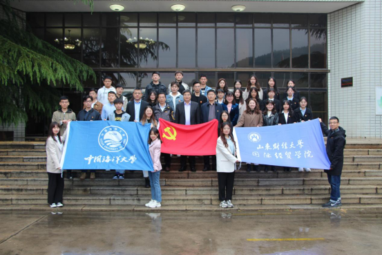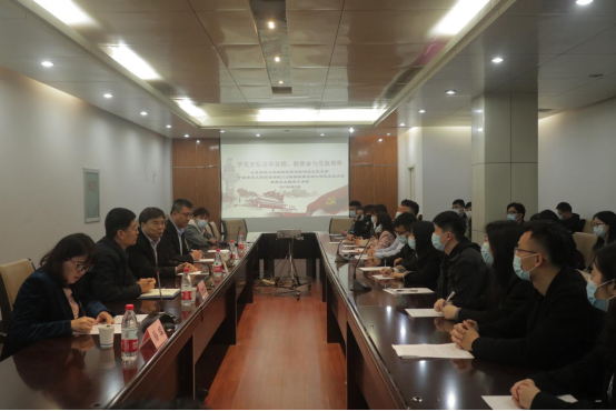 研究生党支部与中国海洋大学经济学院2020级国际商务硕士研究生党支部以“学党史忆百年征程,担使命为党旗增辉”为主题,于舜耕校区礼堂会议室联合举办主题党日活动,交流党史学习做法和心得。校长、校党史学习教育工作领导小组副组长赵忠秀出席活动,并为同学们作党史学习专题报告。学院党委书记徐世星副书记郝秀峰,党校办副主任田远出席了活动,两个支部40余名党员聆听了报告。活动由研究生支部书记滕晖主持。