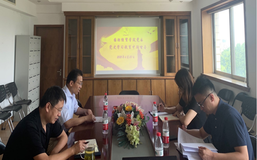 检查指导党史学习教育工作,学院院长王培志、党委副书记郝秀峰、专职组织员王思远参加会议。