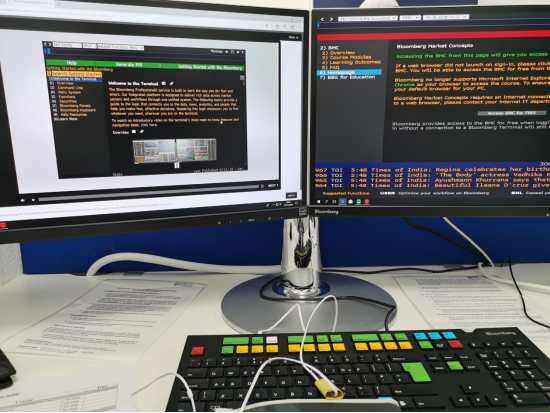 彭博社金融培训无疑是本次访学最珍贵的经历。培训在赫瑞瓦特大学Mary Building的彭博金融实验室举行。实验室窗明几净,宽广通阔,靛蓝色羊毛地毯,砖墙粉刷成白色,使人心旷神怡。王阳明理学讲究“格物致知”,但凡一件事物要真正弄明白,弄通透,需要塌下身子去“格”它。格的过程漫长、寂寥甚至艰难,对格物者的要求便相应高了起来,平和的心态,专注的认知,稳健的思维长度和优越的悟性都将成为能否达到“致知”状态的门槛和标准。彭博实验室这样优雅的环境和专业的配色,使人变得专注、安静,正是一个适合格物致知的好地方。实验室的彭博终端由主机、彭博键盘、鼠标和两大块连在一起的显示屏组成,其可以同时处理两个全屏的窗口任务,效率极高。这大概是彭博社“实用主义”的集合展现,高效率带来的运营模式和福利分配使得企业遇强则强,在大数据时代信息的处理上独占鳌头,将财经金融类消息把握于股掌之间,只有在这样虚怀若谷的基础上,才能进一步深入透析每一个涨跌点的经济动态,深刻理解每一个公司财报后的企业消息,把握住国民经济发展的动脉,抑或是足以犀利和证据确凿地站在特朗普面前,使得胆小者直接封杀彭博社的采访权力。实际上,特朗普对彭博社的禁令恰恰是一种承认霸权的反霸权措施,是一种气急败坏的快速认输,是一种跪地求饶的自负表象,是一种直接否定下的终极肯定,他肯定了彭博社的信息庞大,肯定了其敢言它人之不敢言。
