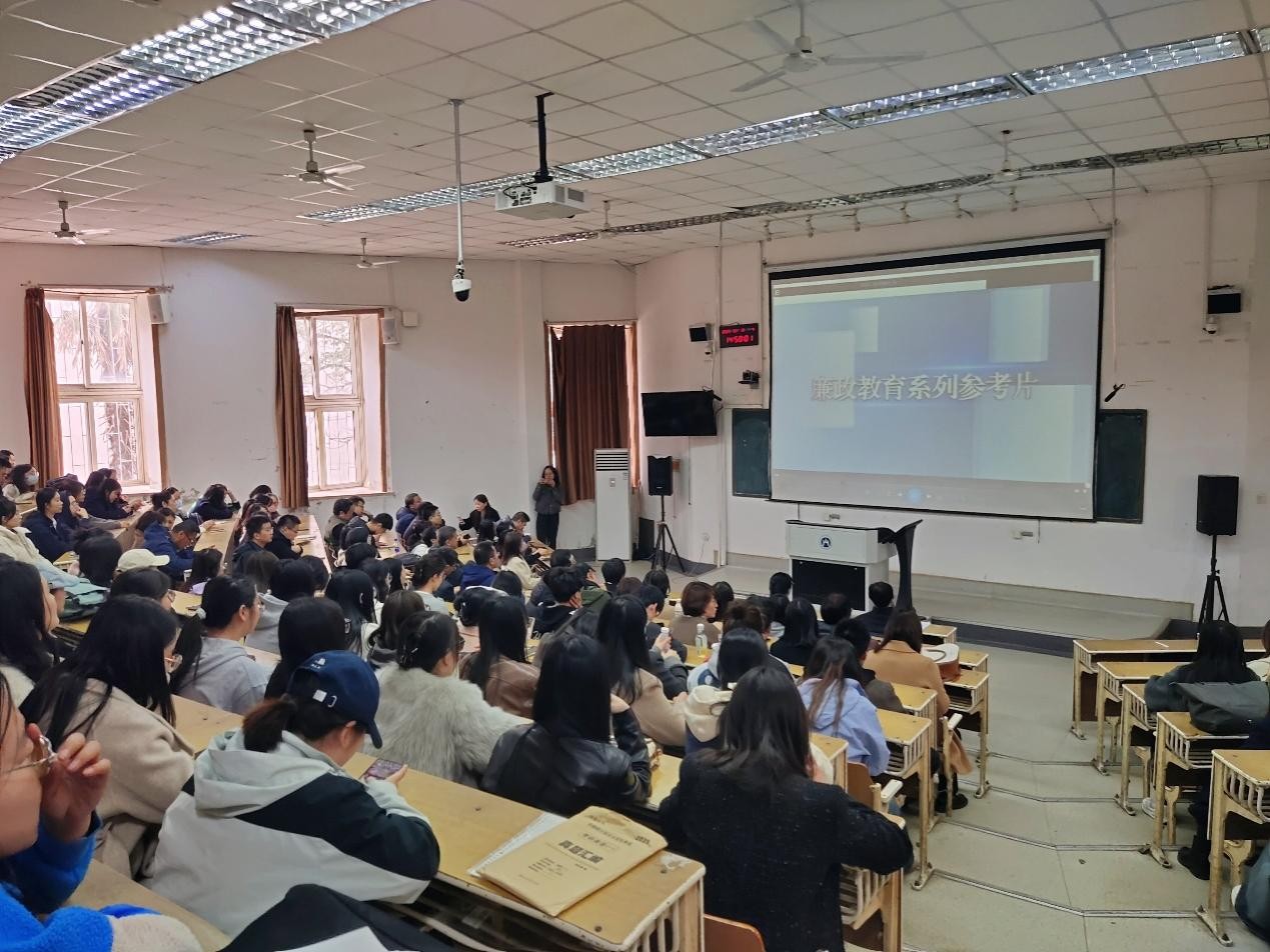 党委开展廉政教育,组织全体师生党员集中观看廉政教育片。
