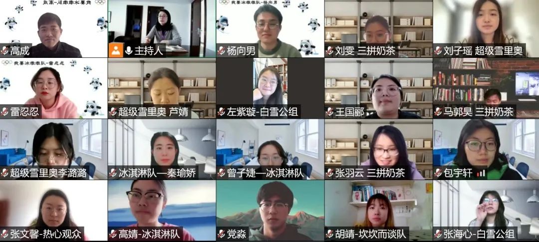 在比赛过程中,参赛队伍热情高涨,精诚协作,你“抢”我答,场面精彩激烈,热闹非凡。在最后的角逐中,按照所有项目总分的高低,有三支队伍成功脱颖而出,分别是:我要冰墩墩队、白雪公组队和三拼奶茶队,相应获得一、二、三等奖。