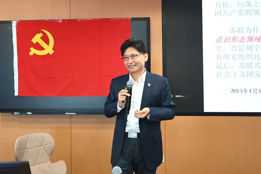 王海军教授首先指出,善于总结经验是中国共产党治国理政的重大优势,并通过回顾中国共产党的三次历史决议,阐明党史中蕴聚着规律、蕴含着初心、蕴藏着信仰、蕴酿着自信,希望大家从党史学习铭记初心使命、汲取奋进力量。
