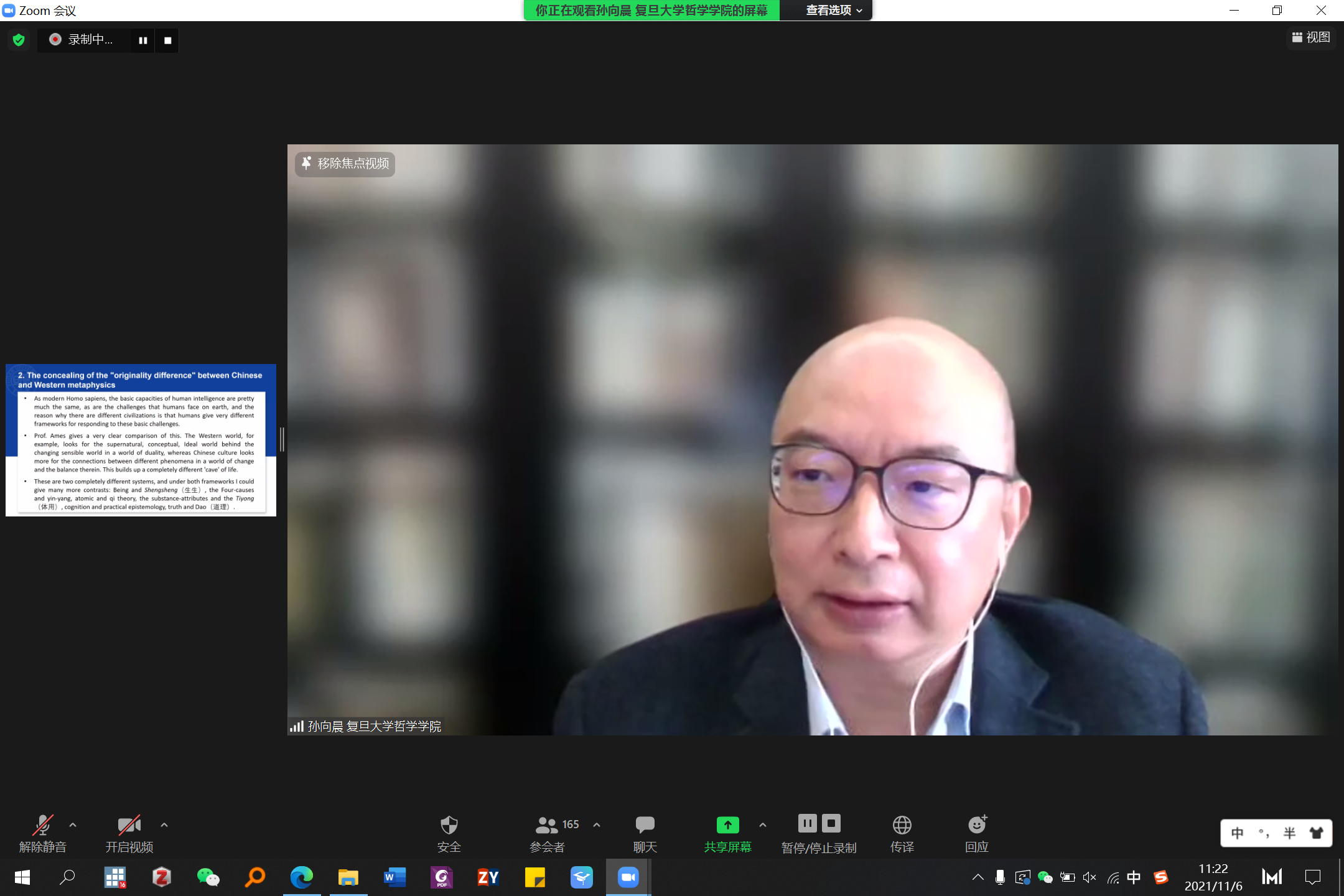 风月文学网 陈剑澜教授主持的第二组主旨演讲,由北京大学/夏威夷大学安乐哲教授(美国)论说“中西思维方式之间的形而上学语法”。他简要梳理了葛瑞汉(英国)所代表的汉学家以及中国学界的比较研究,从西方自古希腊以来的本体论(ontology)和中国古代的“生生论”(zoetology)入手,就这两种形而上学的内在逻辑和根本差异予以归纳,并由此讨论中西哲学之宇宙论、存在论、方法论的可能区别。复旦大学孙向晨教授作了回应。他认为哲学研究是汉学研究必要的一环,重视中西哲学的“本原性差异”,才能形成理解中国的根本性框架,帮助我们重新发现自己。孙向晨教授还结合与会学者的提问,进一步解释了“生生论”对海德格尔“向死而生”之说的可能深化,以及当代西方的“生成论”哲学与中国思想的对话空间。