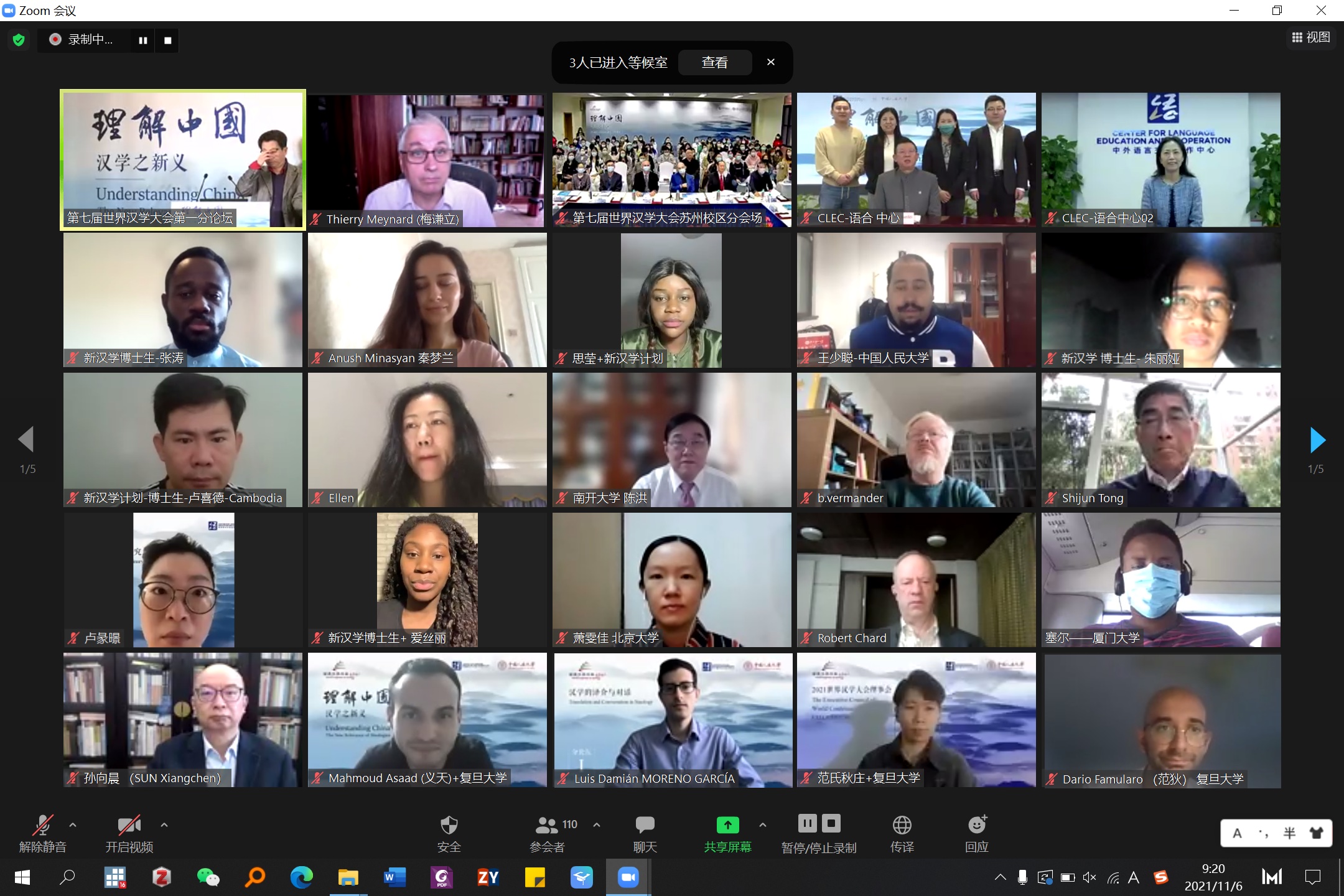 中关村校区和苏州校区分别设立视频会场。这是自2007年首届世界汉学大会以来首次以线上形式召开大会,来自三十四个国家的近百名汉学家与中国研究学者“云端”相聚,围绕“理解中国:汉学之新义(Understanding China: The New Relevance of Sinologies)”的主题展开对话。