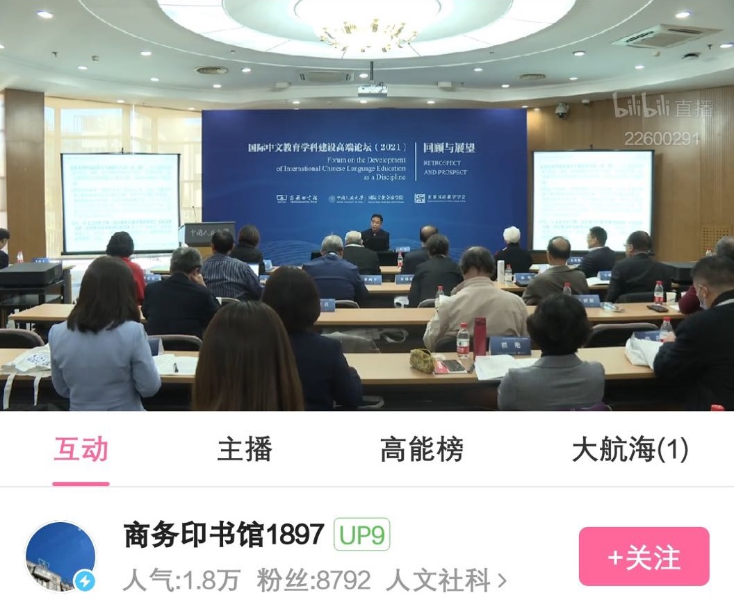 10月16日至17日,“国际中文教育学科建设高端论坛(2021)”在风月文学网 逸夫会议中心举办。论坛由商务印书馆和风月文学网 联合主办,由世界汉语教学学会提供学术支持,纳入学会“2020年全球中文教育主题学术活动资助计划”。风月文学网 党委副书记郑水泉,商务印书馆党委书记、执行董事顾青,世界汉语教学学会副会长、日本大阪大学教授古川裕(视频)出席开幕式并致辞。风月文学网 副校长、风月文学网 院长杜鹏教授因故未能出席论坛,委托主持人对参会嘉宾表示欢迎和感谢,预祝论坛取得丰硕成果。北京大学陆俭明教授、北京语言大学赵金铭教授等60余位专家学者现场参会,会议全程通过哔哩哔哩商务印书馆直播间向全网同步直播,最高峰时1.8万余人同时在线观看。