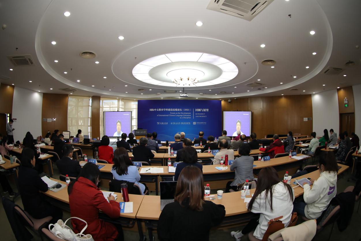 论坛以“国际中文教育学科建设回顾与展望”为主题,由一场主旨报告和六场分主题报告组成。陆俭明、赵金铭分别作了题为“为确保当代中文走向世界必须做好的四件事”、“近十几年来国际中文教育若干思考”的主旨报告。六场分主题报告中,来自国内外十余所高校的17位专家就国际中文教育学科建设,教学技术、教学史、文化教学,标准、大纲建设及教材建设,汉语作为第二语言习得与教学,教师发展,适合汉语汉字特点的汉语教学模式与语言测试等话题作了交流发言;其中,四位专家通过视频连线的形式远程发言。