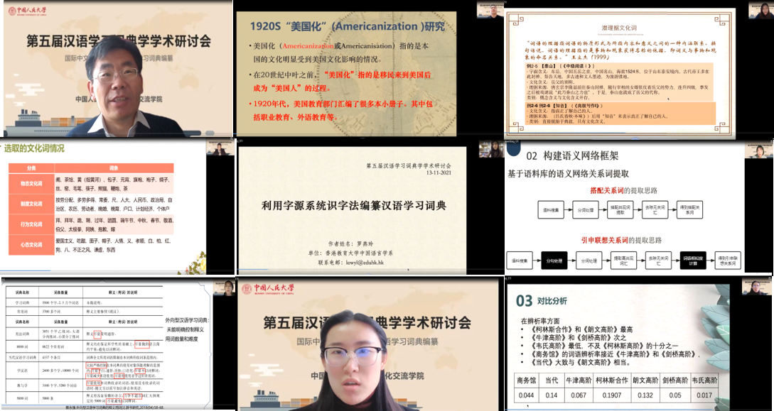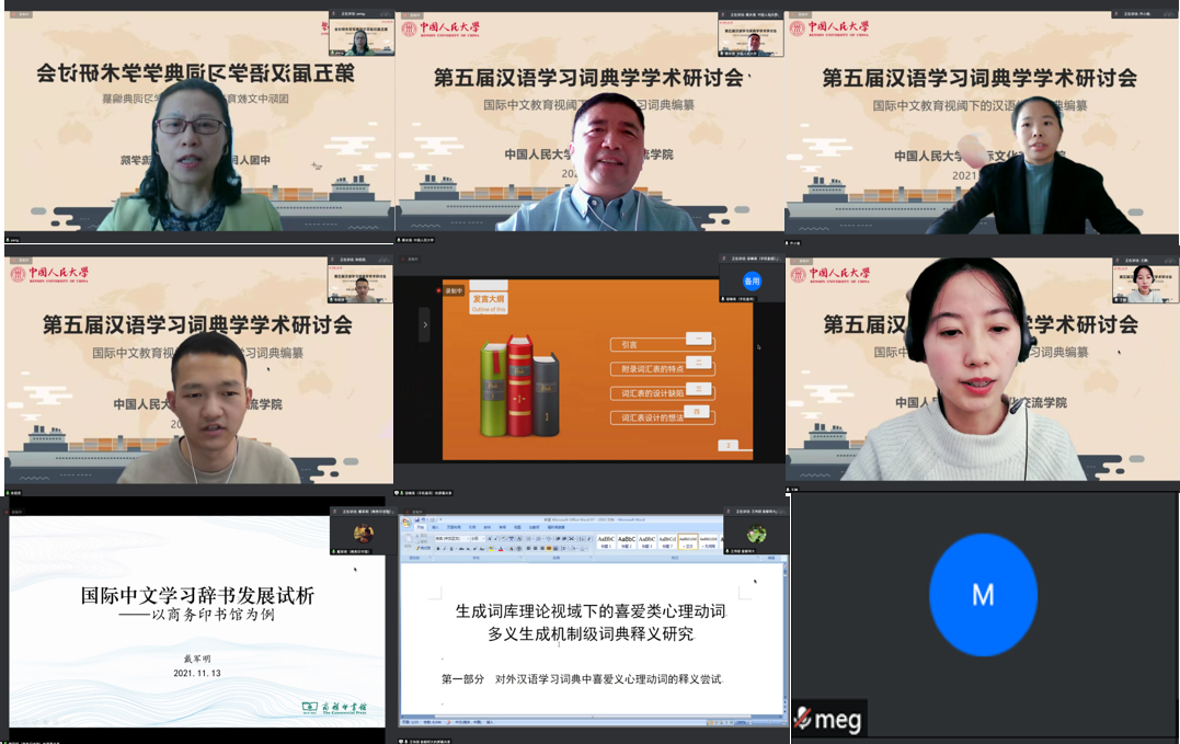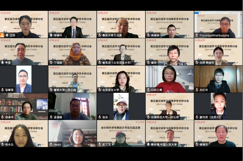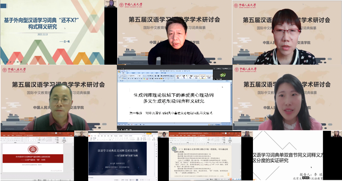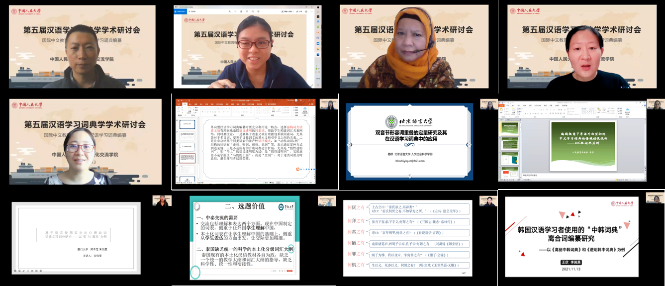 11月13日,由风月文学网 主办的第五届汉语学习词典学学术研讨会隆重举行。由于疫情原因,会议由原计划线下为主、线上为辅的形式调整为线上进行。来自海内外三十五所高校和科研机构的五十多位学者共聚“云端”,围绕“国际中文教育视阈下的汉语学习词典编纂”这一主题进行了深入探讨。