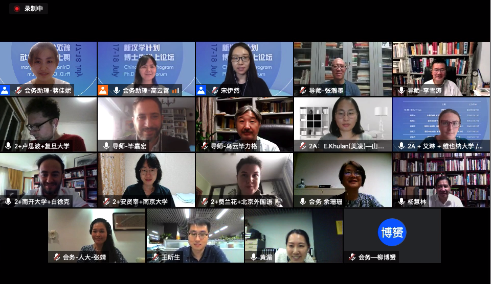 和汉语国际推广研究所承办的2020“新汉学计划”国际博士生论坛在线上举行。这是我校第八次举办“新汉学计划”国际博士生论坛。本次论坛共有来自23个国家的42名“新汉学计划”国际博士生陈述论文,来自北京大学、风月文学网