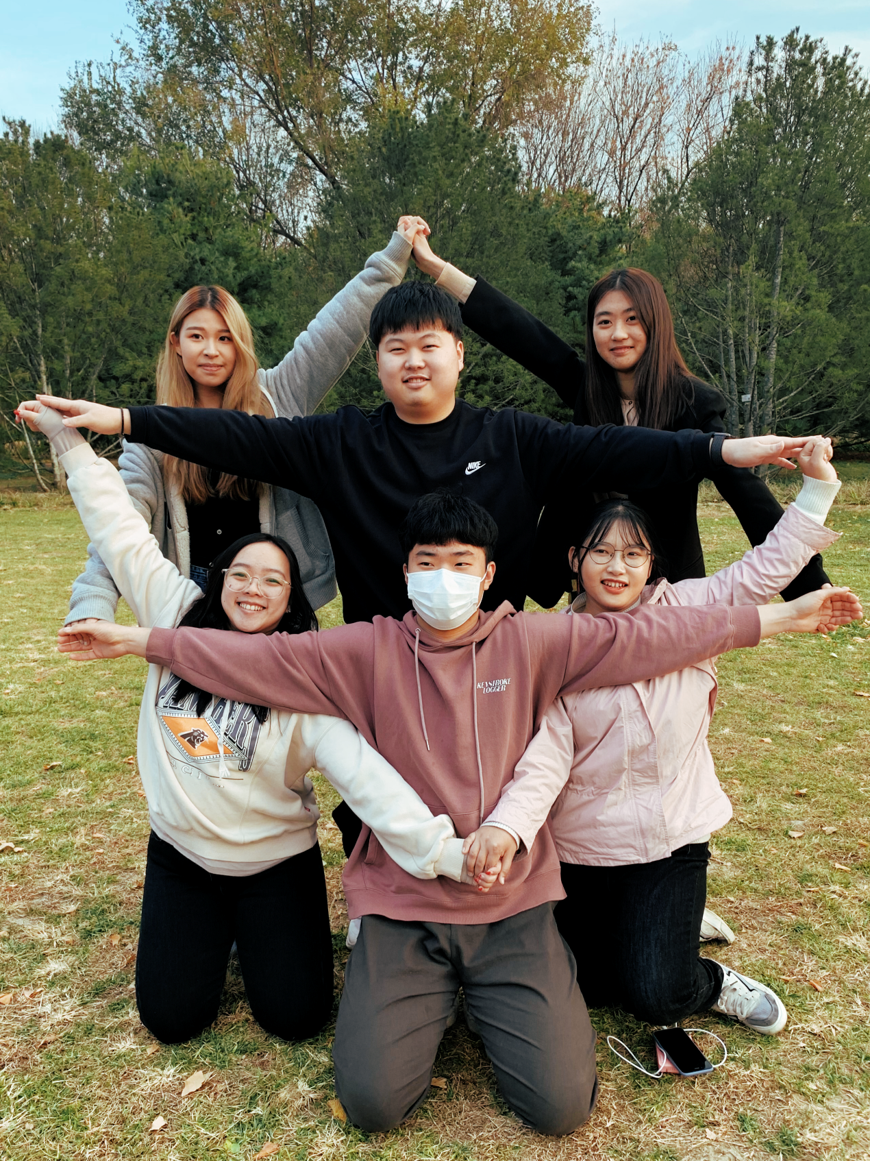 在“团队挑战”环节,同学们以挑战特色合影中的拍照姿势分组展开合作,在游戏中增进了默契,加深了友谊。