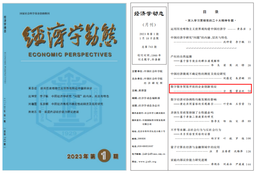 方慧教授与其指导的博士研究生霍启欣合作撰写的论文《数字服务贸易开放的企业创新效应》在《经济学动态》2023年第1期发表。该刊系我校A1类期刊。