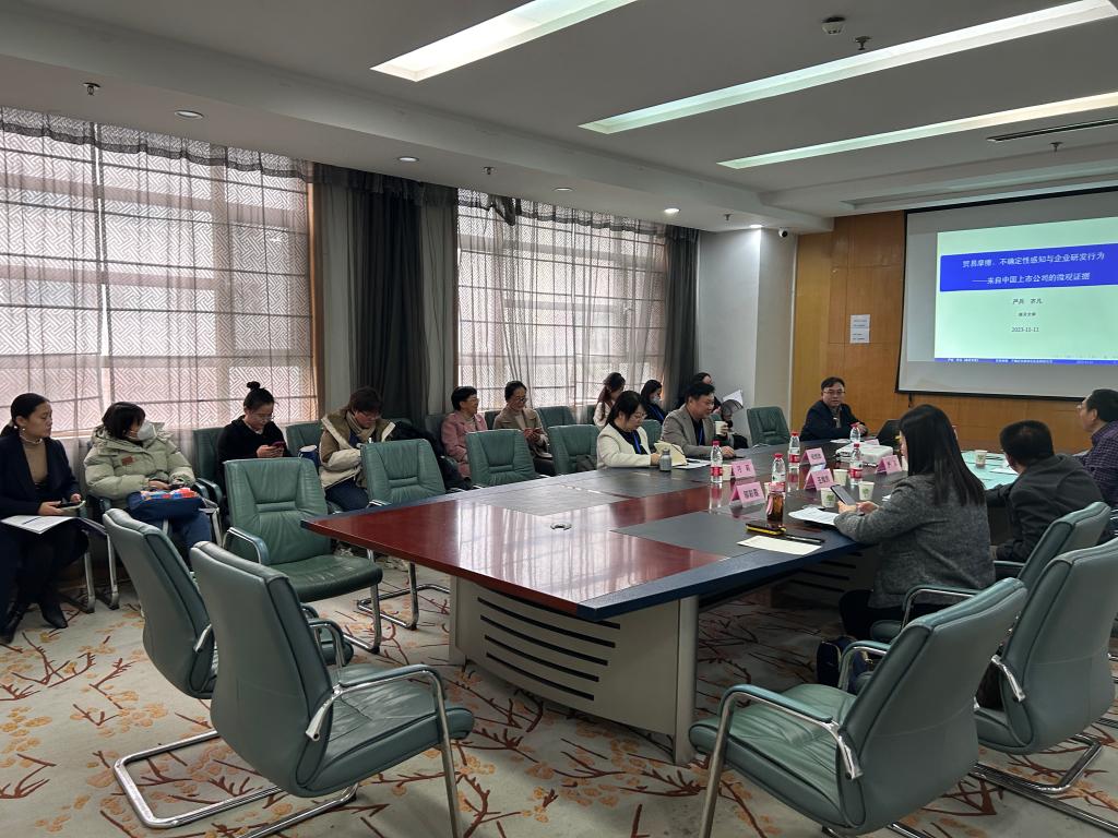 副教授刘磊分享了论文《国内价值链分工与制造业“低端锁定”破局-基于创新数量和质量的视角》。参会者围绕上述报告展开了深入且富有建设性的讨论与交流。
